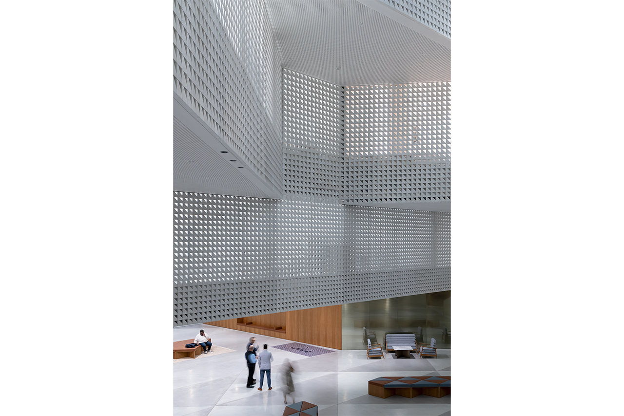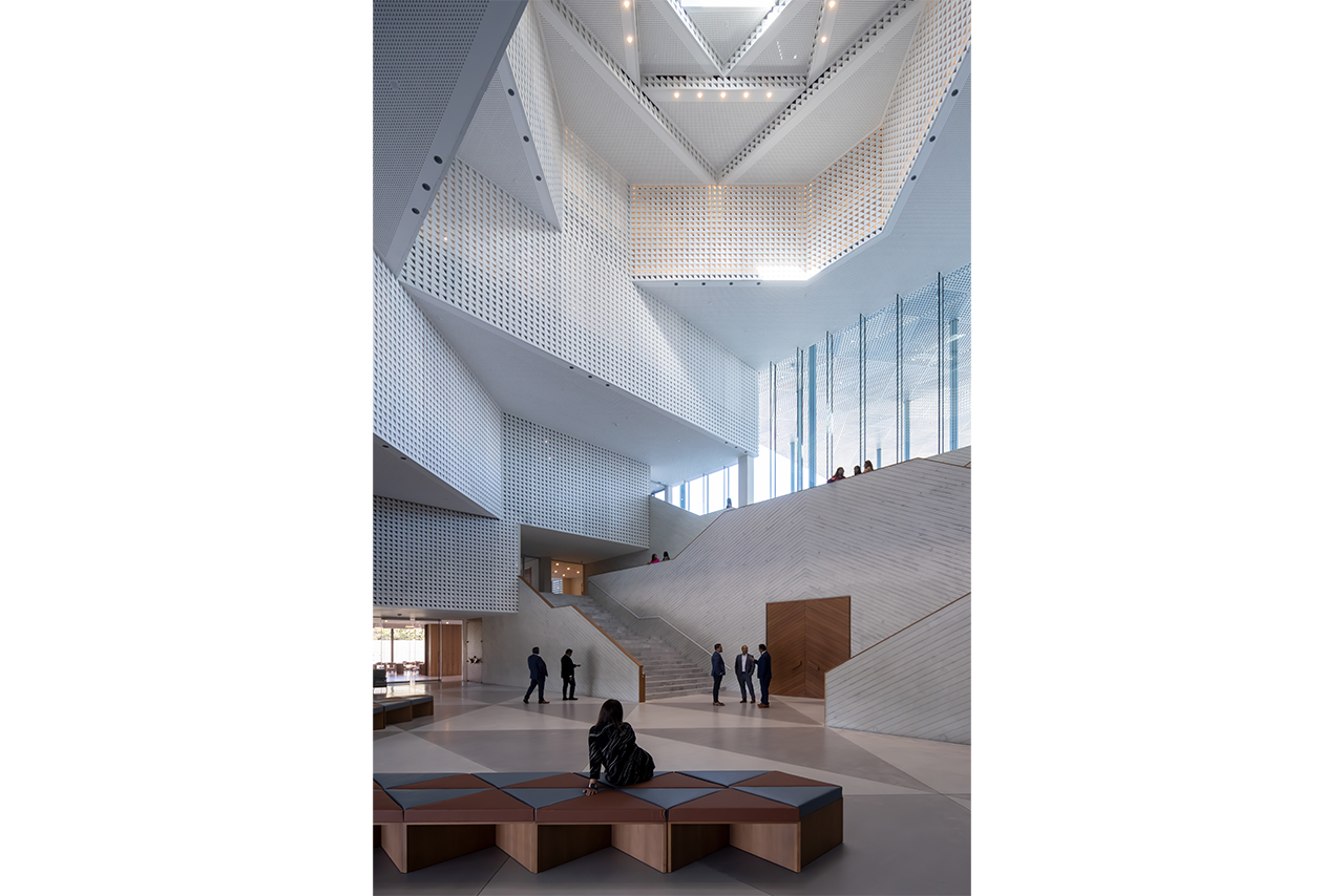The building interior will include three atriums that will act as common, non-exclusive flexible spaces between rooms dedicated to specific events. Each is located adjacent to an eivan to bring in natural light and views of the sky to the heart of the building. The central atrium’s stepped structure clad in ceramic screens, celebrates the heritage of the cupola dating back to 3000 BCE, dominant in both the architecture of the Sasanian period in Persia and the Christian buildings of the Byzantine empire. The west and east atriums will give access to a theater, a large hall and learning spaces.